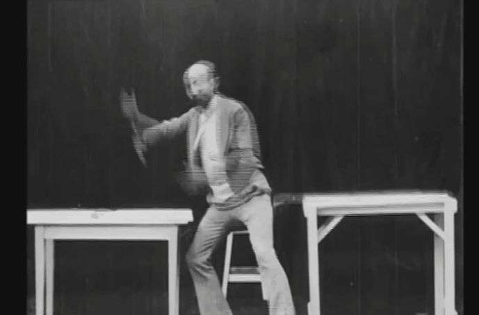 他讓演員全身都穿上黑色的天鵝絨緊身衣,在一個純黑的場景裏拍攝一條影片。這樣膠捲沖洗之後,這個純黑的人就會從畫面上 “ 隱形 ” 了。