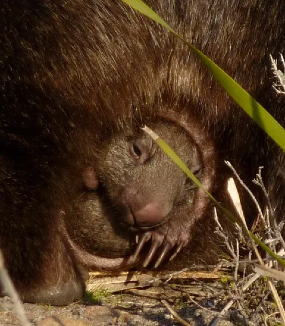 袋熊經常用爪子挖洞創造居住條件,為了避免挖洞時泥土飛揚,讓育幼袋裏的袋熊寶寶被動吃土,育幼袋“貼心”地將開口朝向了後方。不過這也讓袋熊媽媽更容易把便便拉到袋熊寶寶頭上(?|University of Tasmania
