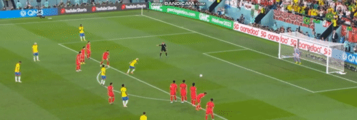 又過了十分鐘,韓國守門員金承奎才第一次撲出了巴西的射門——帕奎塔漫不經心地外腳背單刀。
