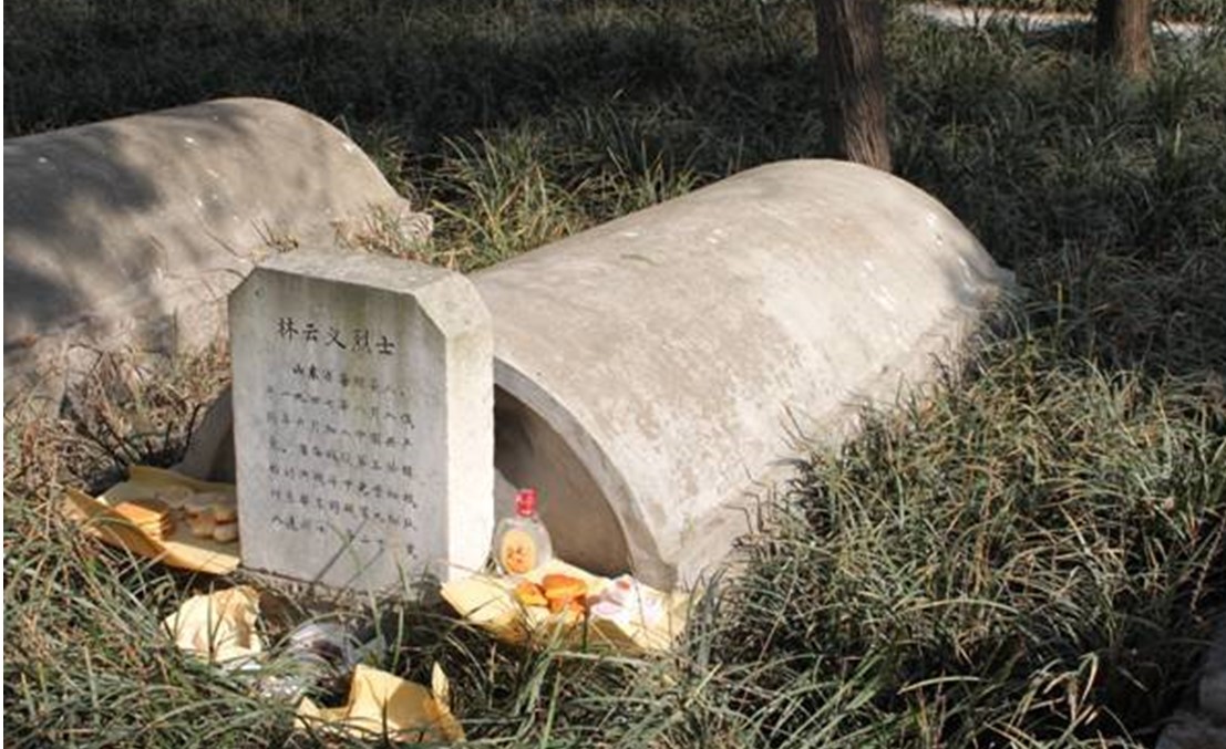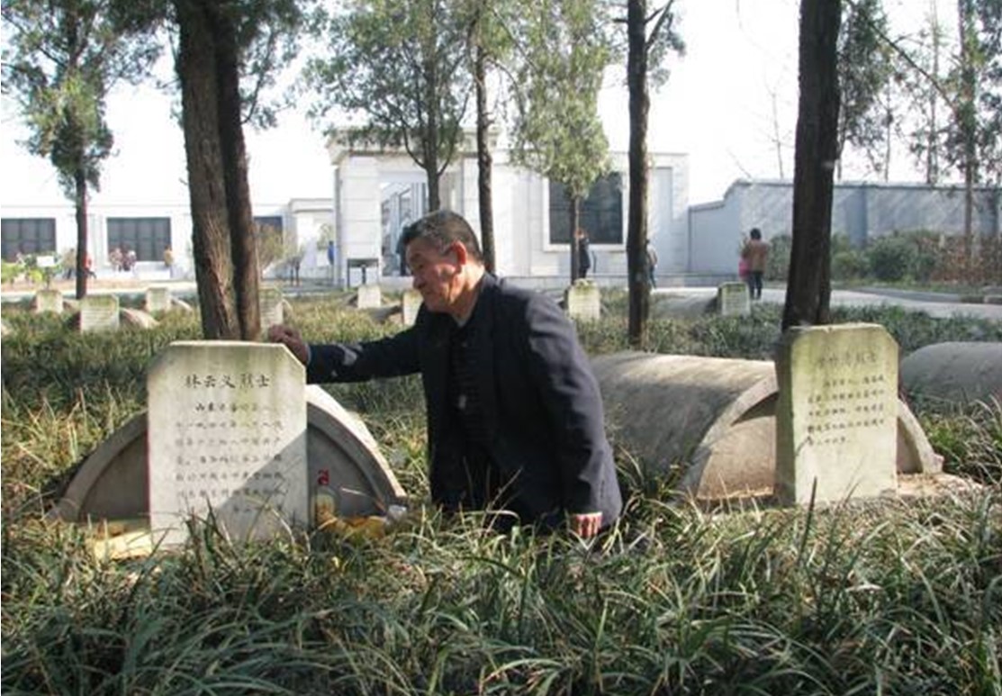 這是一位來自山東海陽的9縱烈士,林雲義,犧牲時27歲,留下3歲的兒子。現在這位兒子已經近70歲了,只知道他父親是烈士,犧牲在河南。老人找了很多年,終於在今年找到了父親,全家第一次來為安葬在異鄉的烈士上墳。