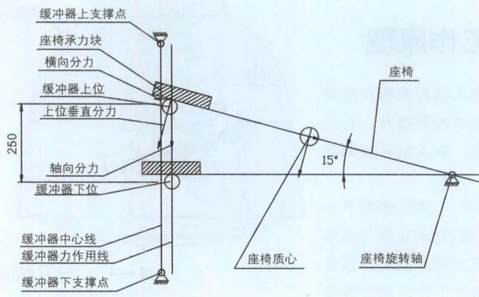 返回艙着陸時,在人-椅系統的衝擊作用下,緩衝器下移 ,從而吸收地面的衝擊力。