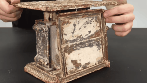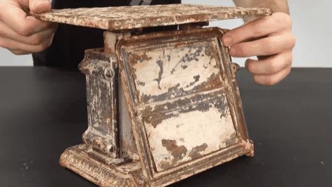 除了這些老玩具,老哥也會對一些上個世紀的老物件也都進行了一個精細的修復,像這台 1900 年的老體重秤。