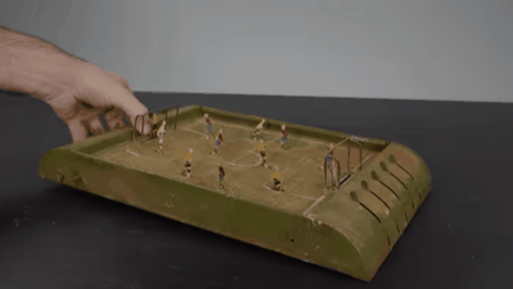 首先登場的這位需要修復的選手:是一位就算拿去當廢銅爛鐵賣了,估計也值不了幾個銅板的足球桌遊玩具。