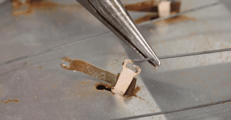 之後就是最麻煩的環節:給玩具上那些已經鏽蝕的不能用的小零件做替換。
