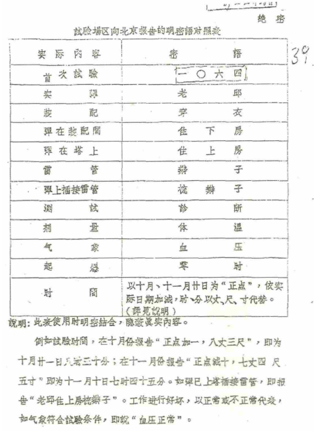 所有關於這顆原子彈的內容,往來通訊都是採用密語的方式,為的就是避免敵人掌握我國研製原子彈的相關情報。