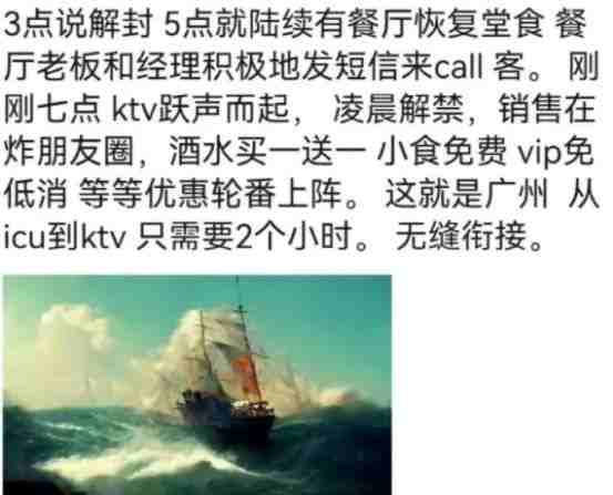 的確,廣州人向來是不信邪、敢為天下先的!這次,面對奧密克戎病毒,廣州不僅打響了鬆綁第一槍,第一個取消了全民核酸,破除了“時空伴隨”,限定了封控範圍,讓密接者能居家隔離!而且解封后,老廣沒有像某國際莊的居民,因為恐懼反而不敢出門,而是在保護好自己的基礎上,歡樂地走了出去,掀起報復性消費,讓煙火氣重新充盈人間。