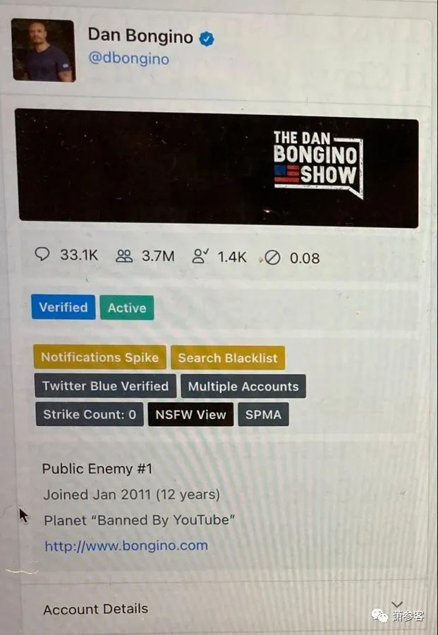 4. 或者考慮一下受歡迎的右翼脱口秀主持人丹·邦吉諾(Dan Bongino @dbongino),他一度被登上了 “搜索黑名單”。