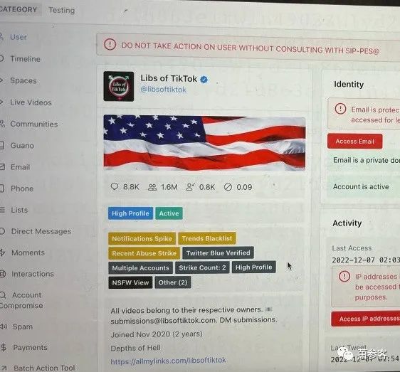 16. 上升到這種程度的審查的一個賬户是 “抖音自由派”(@libsoftiktok) - 該賬户被列入 “趨勢黑名單”,並被指定為“ 未經SIP-PES諮詢,請勿對用户採取行動”。
