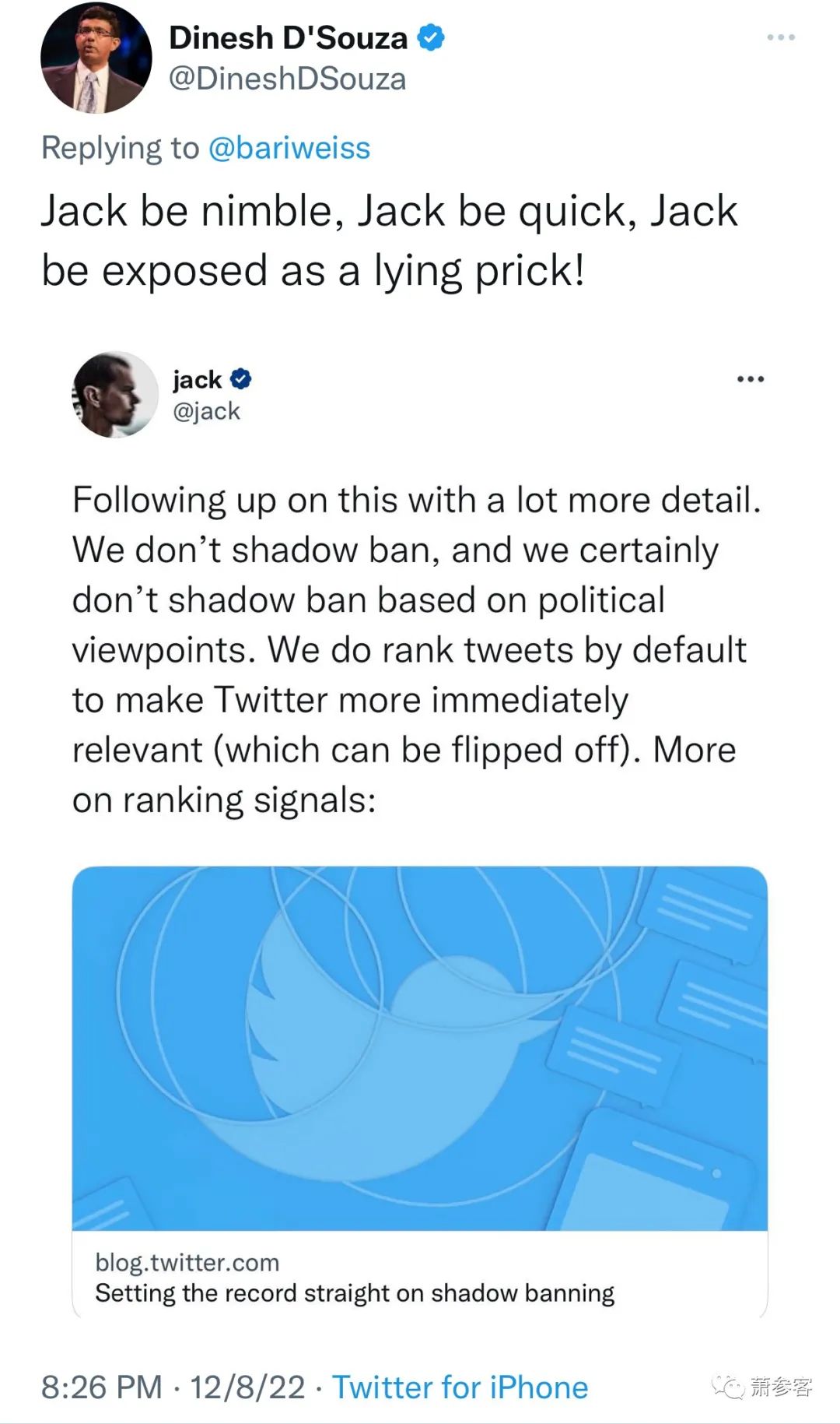 12月8日週四晚上又一爆炸新聞:馬斯克拋出 “推特文件 “第二部分:披露“秘密黑名單”與影子禁令等一系列壓制保守派言論的行為!揭露了此推特社交媒體平台將某些推文和用户秘密打入"黑名單"的做法,讓你觸目驚心!