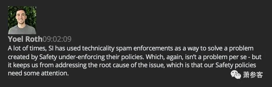 **羅斯的推文:**很多時候,SI(站點誠信) 使用技術性垃圾郵件強制措施來解決安全部門政策執行不力造成的問題。同樣,這本身不是一個問題 - 但它使我們無法解決問題的根本原因,那就是我們的安全政策需要一些關注。