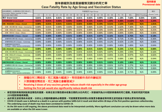 請注意,香港表格裏用病死率替代了死亡率,這個術語用錯了。