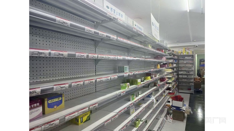 (圖:藥店感冒退燒藥物被搶購一空,央廣網記者 金龍發)