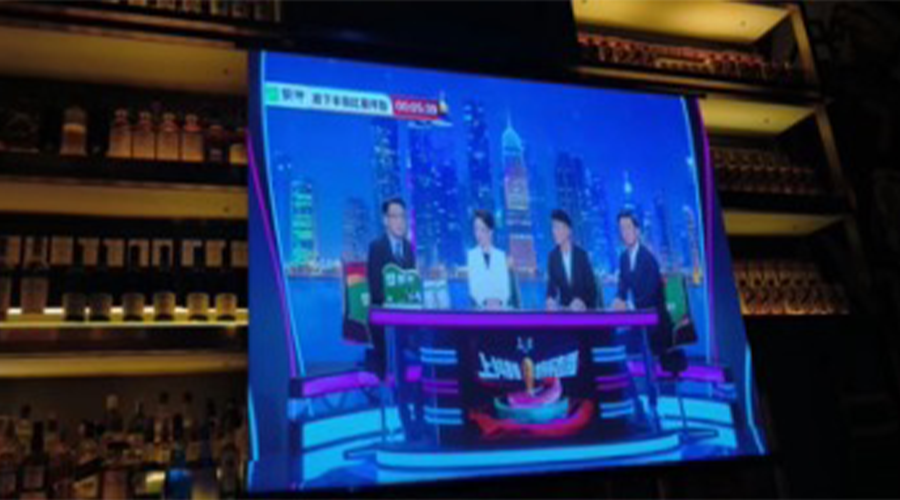 昏暗的燈光下,投影幕布覆蓋了整個吧枱酒櫃,上面「距下半場比賽開始還有00:05:39」的數字顯得格外孤獨。