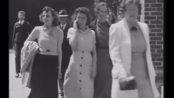 這支視頻拍攝於1938年,片段中一位年輕的女性似乎右手“舉着手機打電話”,“打完電話後”還有明顯的“放下手機”的動作。