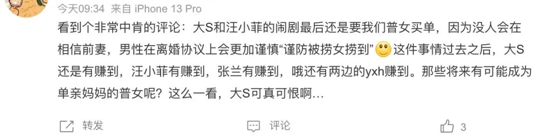 “大S和汪某某的鬧劇,最後還是要我們普女買單。”