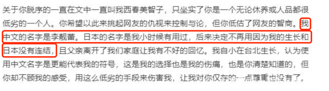 第二天晚上,王力宏的回應姍姍來遲,裏面反覆提及一個日本名字——