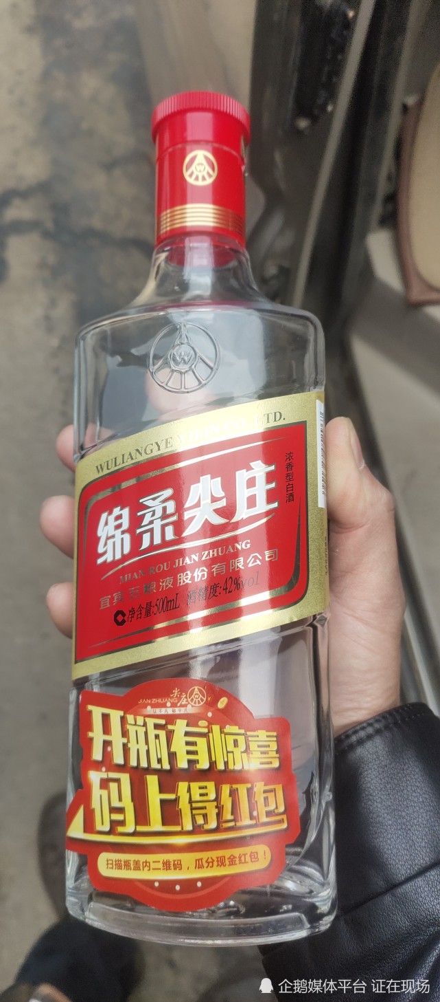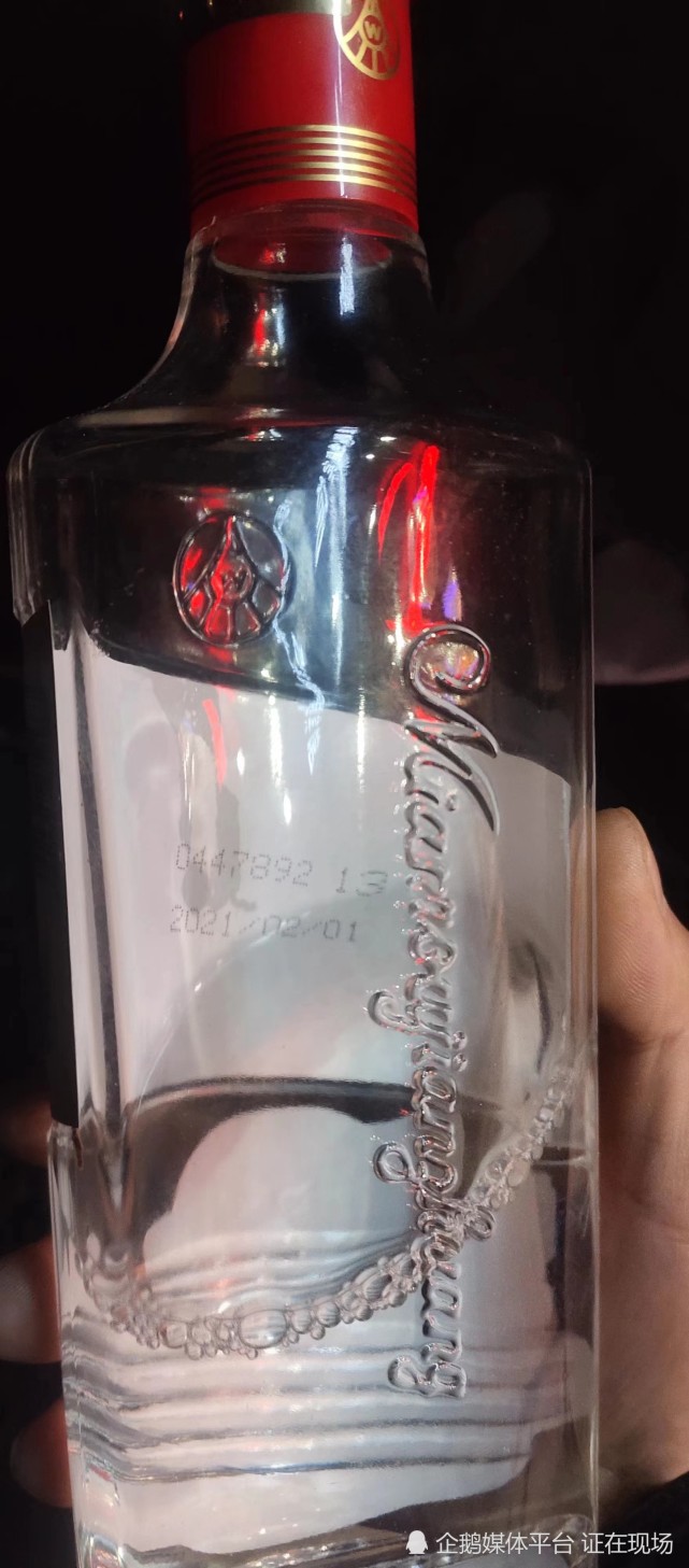 記者由王先生現場提供的兩瓶綿柔尖莊酒(該酒品實屬君悦飯店售賣,該女性店主得以肯定)看到:由宜賓五糧液股份有限公司生產的綿柔尖莊濃香型白酒包裝標籤(瓶體)靠下方粘貼有“開瓶有驚喜、馬上得紅包及掃描瓶蓋內二維碼、瓜分現金紅包”字樣。這兩瓶酒的生產日期均顯示為:2021年2月1日。記者在該飯店大廳處的酒櫃,查看了酒櫃陳列的剩餘該款綿柔尖莊酒,均顯示生產日期為:2021年2月1日,並現場打開了該款涉事酒品掃碼,印證了王先生及其朋友所述屬實。