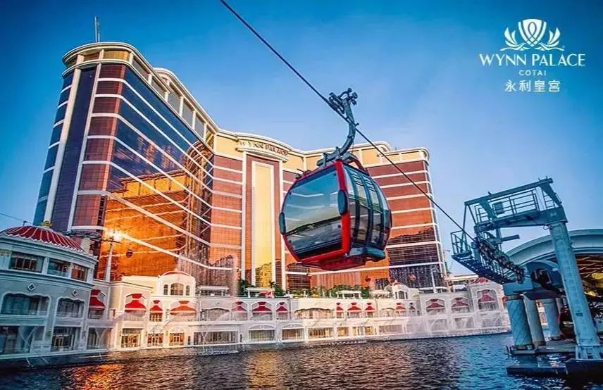 永利皇宮甚至在酒店裏裝上了觀光纜車,晚上整棟水池會有噴泉表演,那會兒坐在纜車上看很漂亮: