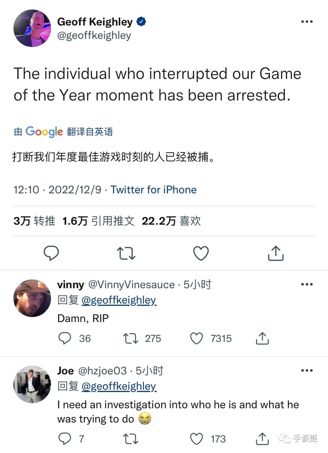 事後Geoff Keighley表示,這個搗亂的少年已經被逮捕。