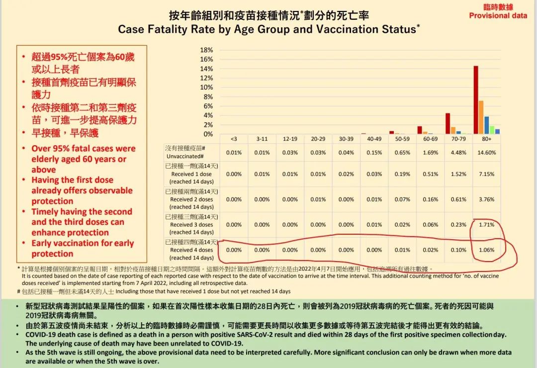 但是,哪怕是接種4針,對≥70歲人羣的病死率還是≥0.1%,而≥80歲更是驚人的1.06%。