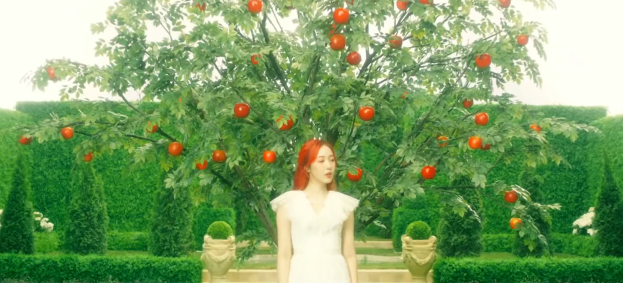 2020年,走清純路線多年的GFriend,想在組合成立五年之際來一次偏性感、成熟的轉型,選用的意象也是蘋果,主打曲直接被命名為《Apple》。MV的開頭,就是在蘋果樹下好奇打量的女孩,摘下蘋果嘗試了一口,露出得逞的笑容。