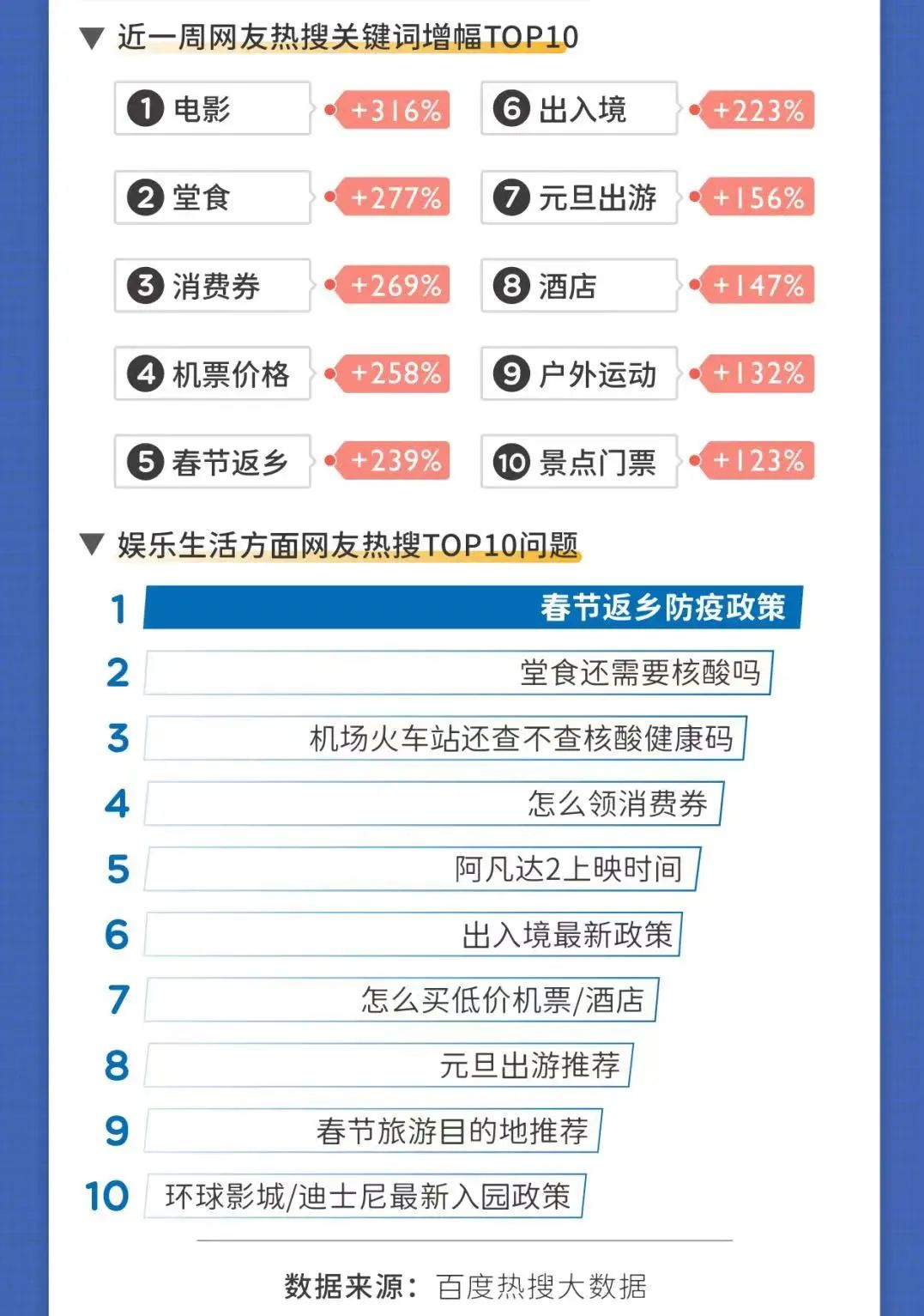 12月7日,受國家和各地優化防控措施的影響,各大在線旅行平台成為了第一時間感知政策變化和市場熱度的“風向標”。如,“新十條”發佈後,攜程、同程、飛豬等平台機票、火車票、酒店等瞬時搜索量高位增長,元旦假期及春節前後搜索量超過了疫後3年來的最高值。