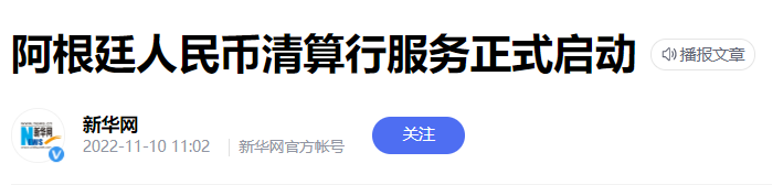 前幾天有個大新聞大家沒有留意,那就是——阿根廷人民幣清算行服務已經正式啓動了。