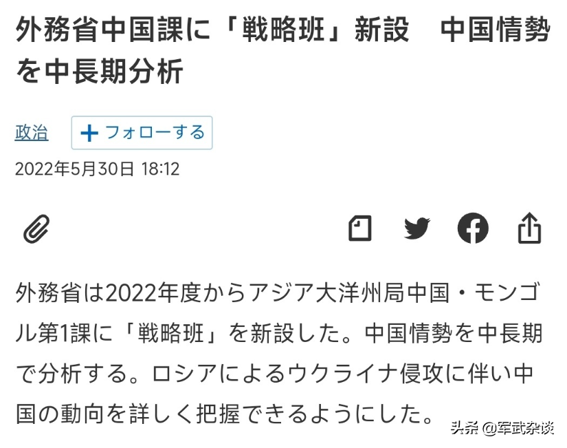 日本外務省針對中國成立“對華戰略小組”,類似侵華戰爭時期的“特高科”,主要目的是分析中國在軍事、經濟、輿論等方面的動向,為日本政府提供相關的中國情報。