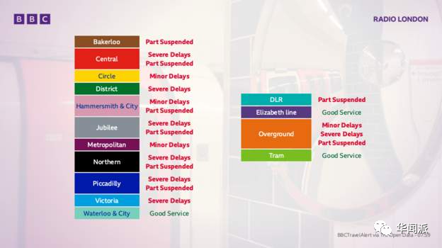 今早倫敦地鐵也出現了大面積的延誤現象,除了伊麗莎白線和有軌電車線之外,基本上所有的線路都出現了延誤。