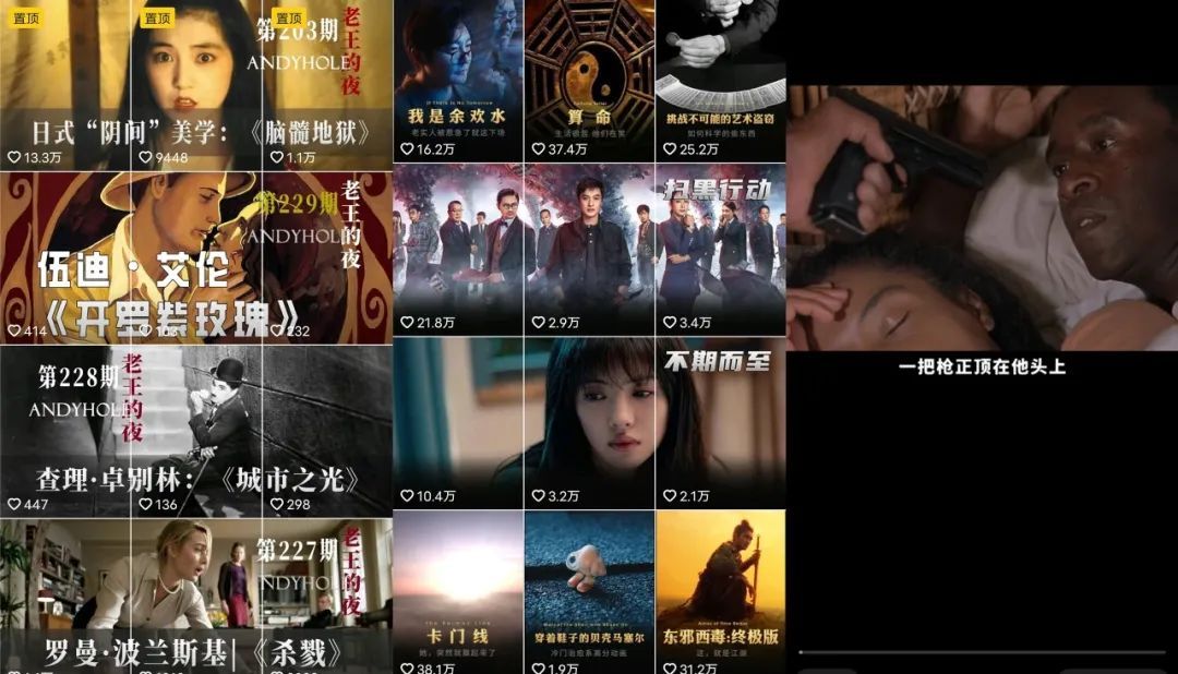 如今,在抖音、快手上有不計其數的電影解説類賬號。在這一細分垂類下,毒舌電影、布衣探案、烏鴉電影等賬號的粉絲已經達到了千萬級。他們的更新頻率大多是3到4天更新一期,一期一般分為三個視頻發佈,這意味着他們必須在三到四天的週期內完成選題、腳本撰寫、素材選曲、剪輯、審核和上傳。相較之下,更多中腰部、處於孵化期的賬號還需要尋找觀眾的痛點和癢點,那麼更新的頻率而更高,日更是常態,甚至需要一天之內更新多個作品。