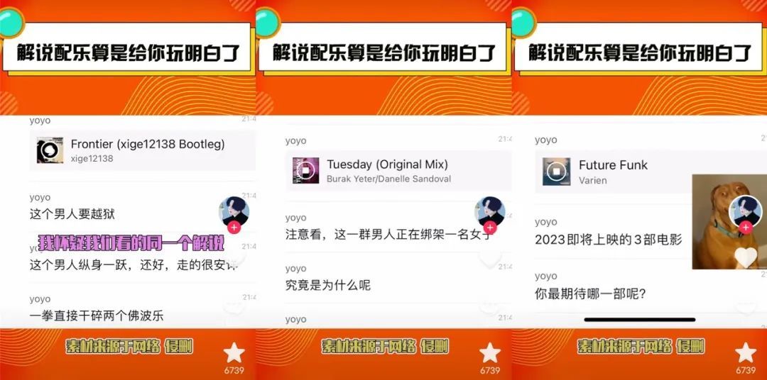 為順應高強度的生產節奏,電影解説類視頻愈加趨同。一模一樣的畫面分割比例、一模一樣的AI人聲、一模一樣的解説話術,而對於配樂而言,複製已成功的配樂經驗毫無疑問是最高效的方式。