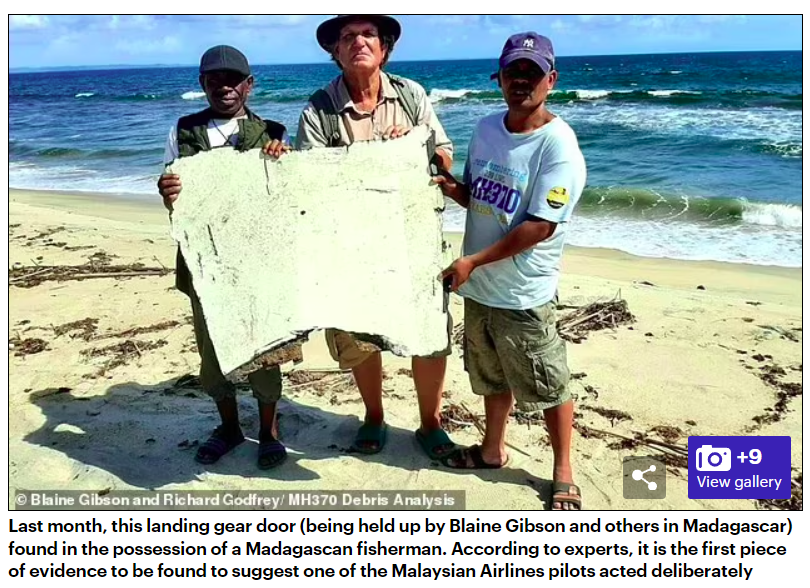 調查人員25天前在馬達加斯加一户漁民家中**發現一塊MH370起落架艙門殘骸,**殘骸上的切口表明當時飛行員在飛行終止前放下起落架。