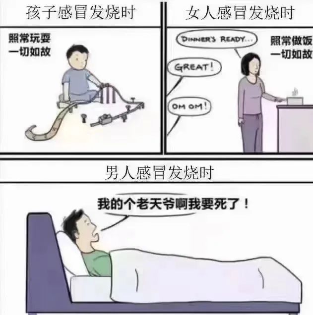 很難想象,平時有個感冒發燒都恨不得立個遺囑叫救護車的已婚男人們,碰上新冠的時候會發生怎樣的故事……