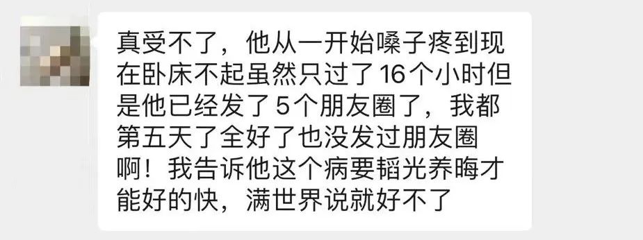 有個朋友説,她老公陽了之後恨不得在朋友圈直播,昭告天下,還到處散發委屈小廣告。