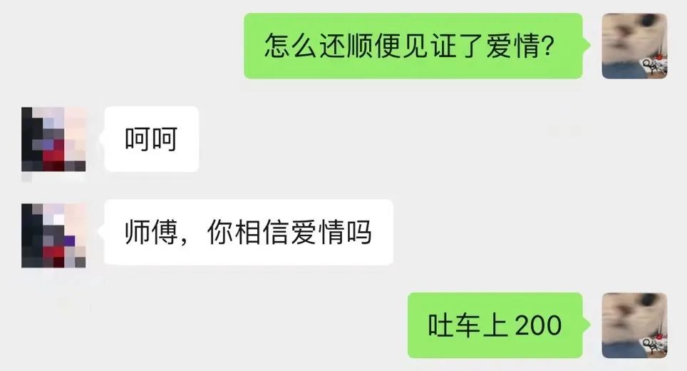 哎,也是,啥愛情不愛情的,只要問師傅相信愛情嗎,師傅就會告訴你吐車上200,心腸好的還勸你下次少喝點。