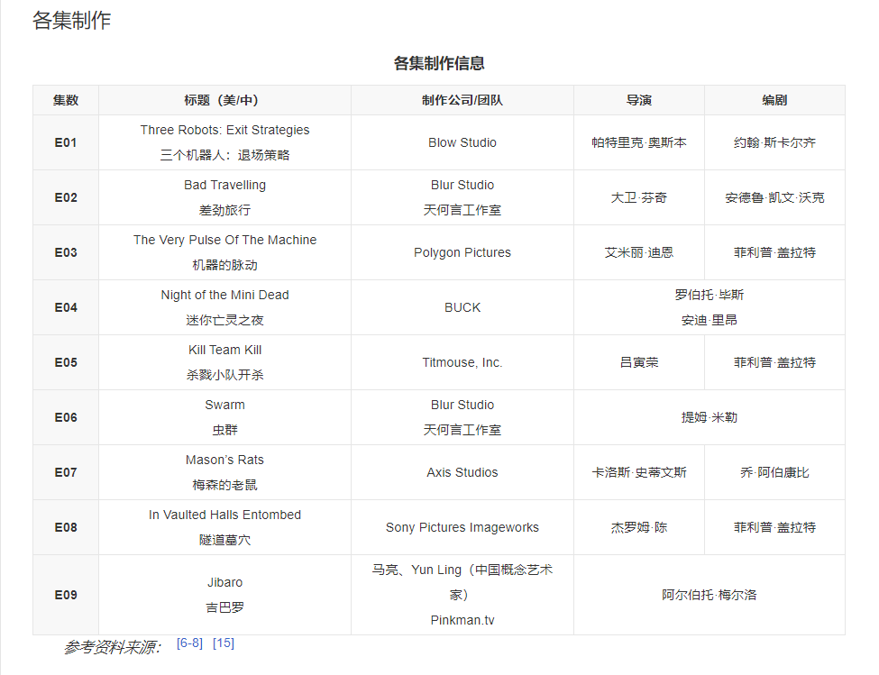 網友吹捧《愛死機》技術好,結果一看1集不到10分鐘,從更新頻率來看製作時間2年左右。長點的就第三季《差勁旅行》21分鐘,導演世界名導大衞·芬奇,投資肯定也是最高的。