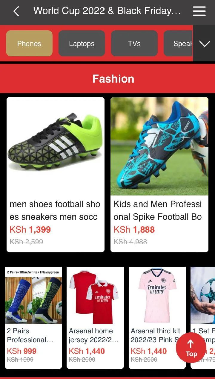 圖為Kilimall平台上售賣世界盃周邊產品的頁面。(手機截屏)