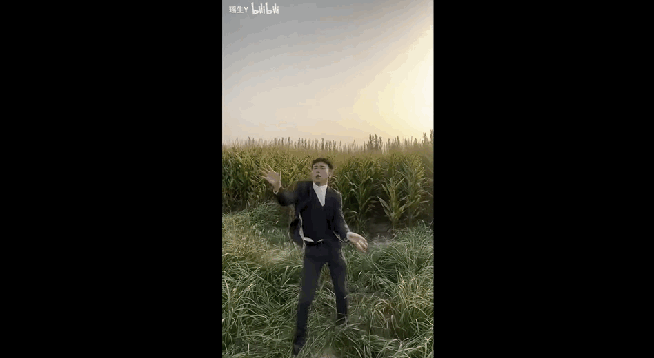 00後小夥在麥田中配着《星際穿越》的音樂搖花手,科幻與土味同奏毫無違和感;