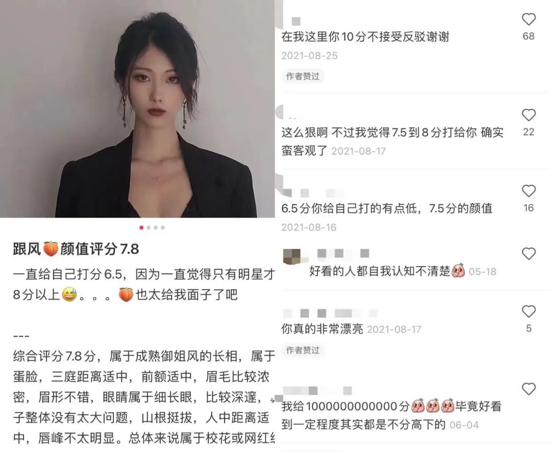 小紅書的顏值打分,具備一套特殊的評分體系,且有着從前到後的不同演化階段。