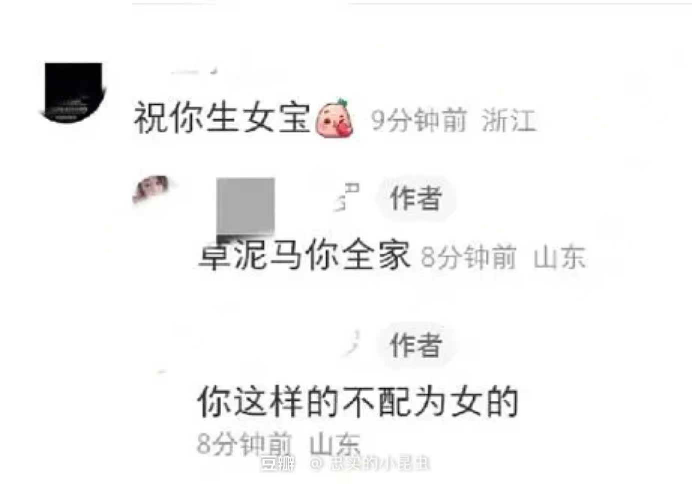 很快,一些男性用户發起了反擊。先是一些小紅書熱帖被轉至貼吧、虎撲等男性氣質濃厚的社區,相關帖子下,部分男性網友會用直接且侮辱性的詞語去反擊這種多元化審美。而如果有女生評價“姐妹很可愛”,就會有人回覆,“祝你跟她一樣可愛”,試圖激怒對方,當然,這種策略往往有效。