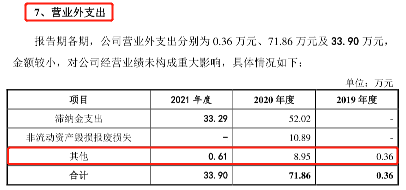 招股書顯示,報告期內卡萊特營業外支出分別為0.17萬元、0.36萬元、71.86萬元及33.72萬元,主要包括滯納金、非流動資產毀損報廢損失、其他支出。而卡萊特對其他支出是指什麼支出並沒有進行説明?為何沒有説明?是否包含罰款支出?進而隱瞞了被罰款的行為?