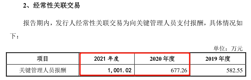 2021年也是如此,除去上述三人的薪酬,2021年關鍵管理人員薪酬應該為894.5萬元。但是在關聯交易的經常性關聯交易中,關鍵管理人員薪酬1,001.02萬元,相差很多。
