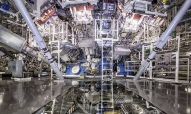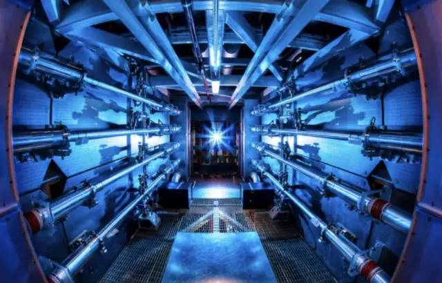 激光慣性約束裝置的原理是就是用高能激光來加熱氫燃料標靶,使其發生聚變反應。勞倫斯·利弗莫爾國家實驗室的“國家點火裝置”由192個激光束組成,通過將激光匯聚在一個氫燃料小球上,可以將靶向目標加熱到1億攝氏度,併產生1000億倍地球大氣壓的壓力,從而實現核聚變反應。