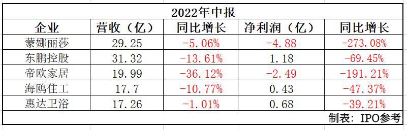 帝歐家居2022年半年報顯示,上半年營業收入為19.99億元,同比下滑36.12%;歸屬於上市公司股東的淨利潤為-2.49億元,同比下滑191.21%,同比由盈轉虧。其中,瓷磚業務實現收入16.06 億元,同比下滑41.15%。