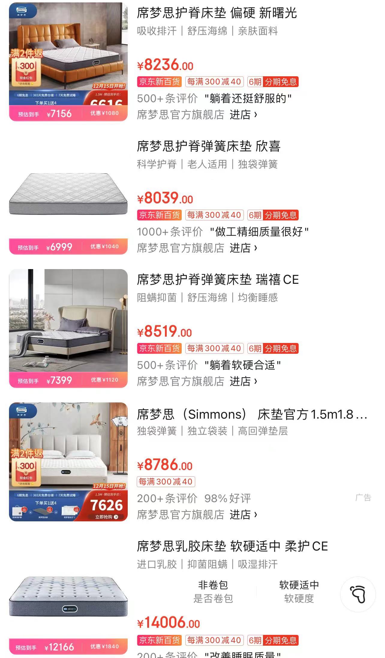 目前,在國內各大電商平台,席夢思仍然在正常銷售,儘管價格不便宜,但是銷量並不低。