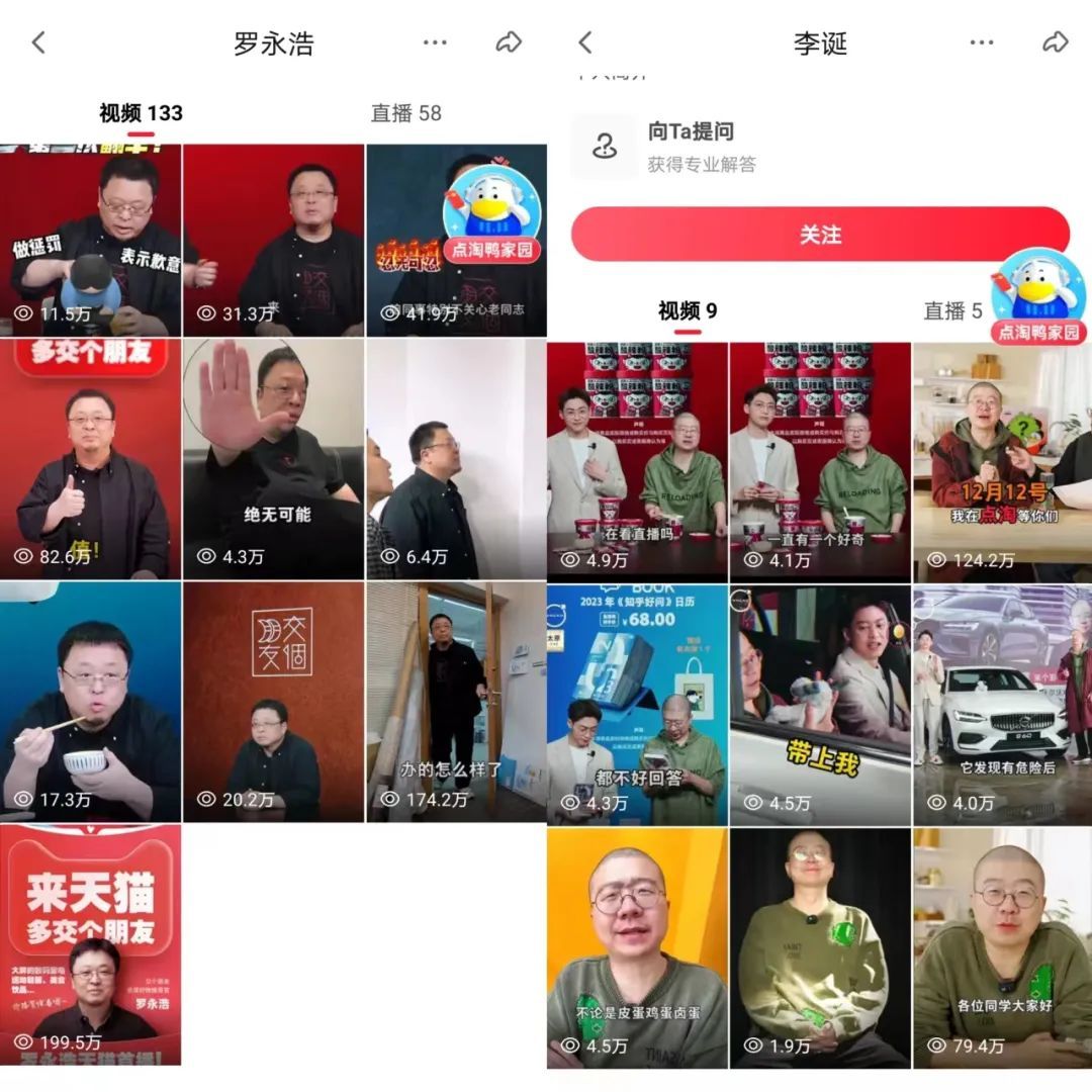 不過,與初入淘的羅永浩來説,可能還有些許距離。以李誕和羅永浩最初發布的視頻作品來看,羅永浩的表現明顯更佳,如李誕的首條視頻播放量為79.4萬,羅永浩則為199.5萬。新入場者李誕的火候或許還得再加加。