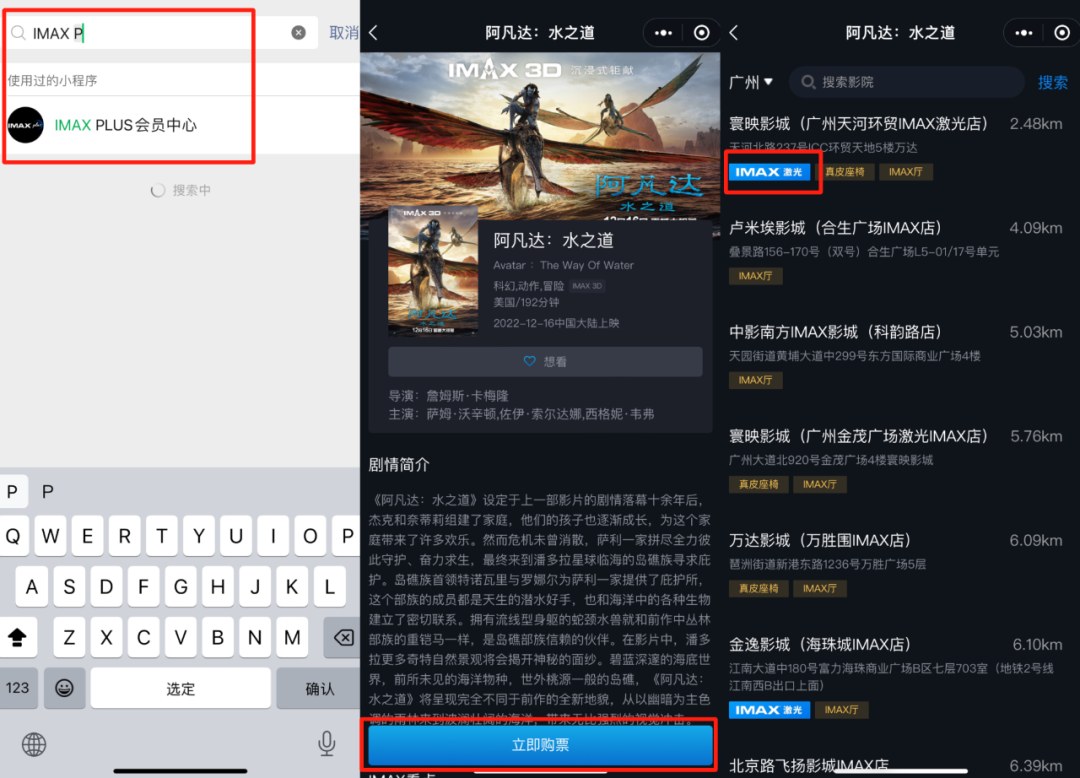 或者,在微信小程序中搜索“IMAX PLUS會員中心”,便可以看到藍色“IMAX激光”標識了。