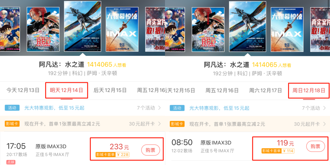 這些被炒出圈的天價票,並不是這次《阿凡達2》的常態。