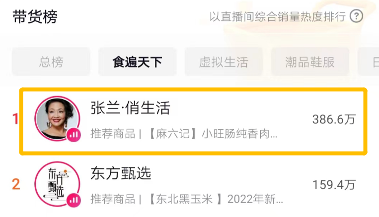 酸辣粉直接賣脱銷,張蘭成為帶貨榜一,連自傳也登上了圖書榜單。