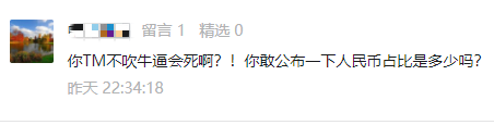 你TM不吹牛逼會死啊?!你敢公佈一下人民幣佔比是多少嗎?